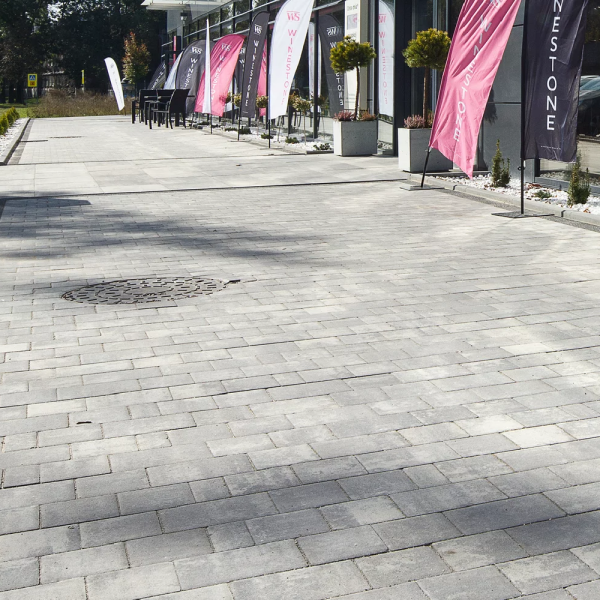 typ powierzchni: faktura gładka kolorkolor: szary● przeznaczenie: podjazd, ścieżka, taras● grubość nawierzchni: 6 cm● wykończenie krawędzi: z fazą● obciążenie: samochody osobowe do 3,5 t● producent: Polbruk