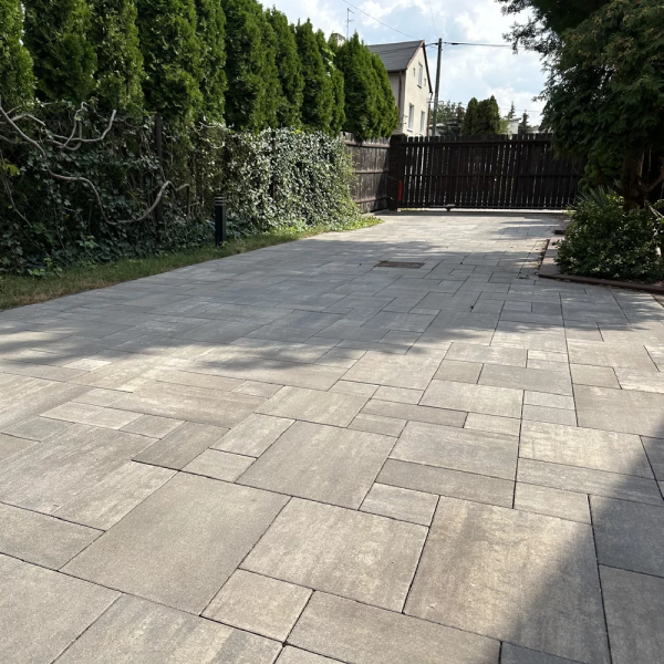 typ powierzchni: faktura gładka kolorkolor: szary● przeznaczenie: podjazd, ścieżka, taras● grubość nawierzchni: 6 cm● wykończenie krawędzi: bez fazy● obciążenie: ruch pieszy● producent: Polbruk