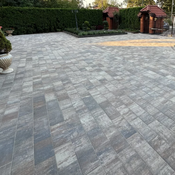 typ powierzchni: faktura gładka melanżkolor: nerino, onyx, taupe● przeznaczenie: podjazd, ścieżka, taras● grubość nawierzchni: 8 cm● wykończenie krawędzi: bez fazy● obciążenie: samochody osobowe do 3,5 t● producent: Polbruk
