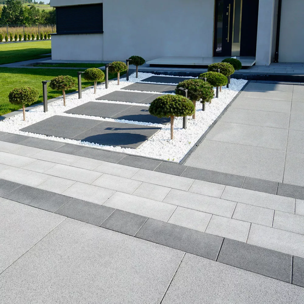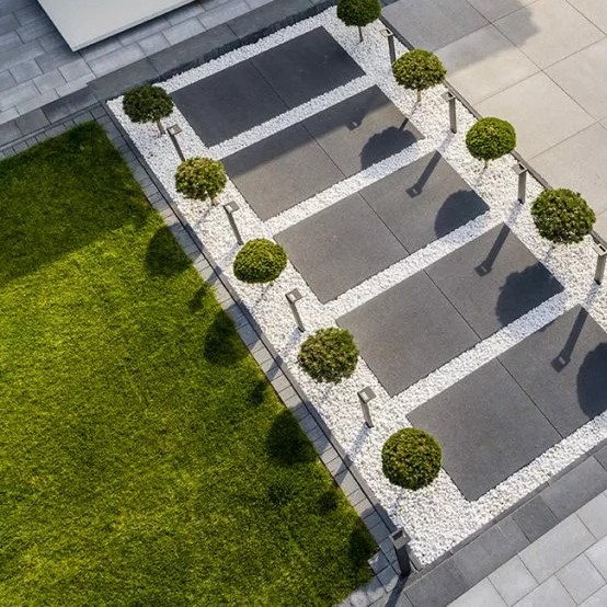 NOVATOR SOLO płyty brukowe Novator są odpowiedzią na wciąż rosnącą popularność nowoczesnego stylu w architekturze. Duży wybór elementów od małych 30×20 cm, aż po wielkowymiarowe płyty 100×100 cm, pozwalają tworzyć z ich udziałem rytmiczne rzędowe lub romańskie ułożenia, które ozdobią podjazd oraz strefę frontową każdej posesji. Dzięki uniwersalnej estetyce, łączącej tradycję z nowoczesnością, oraz bogatej palecie barw nawierzchnie Novator staną się stylowym uzupełnieniem zarówno klasycznych jak i modernistycznych brył budynków
